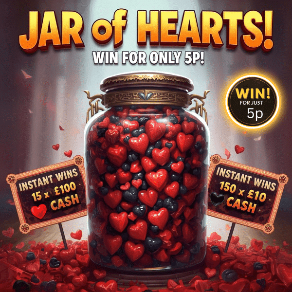π JAR OF HEARTS π15 x Β£150 Instants + 150 x Β£10 InstantsπΒ£100 End Prize