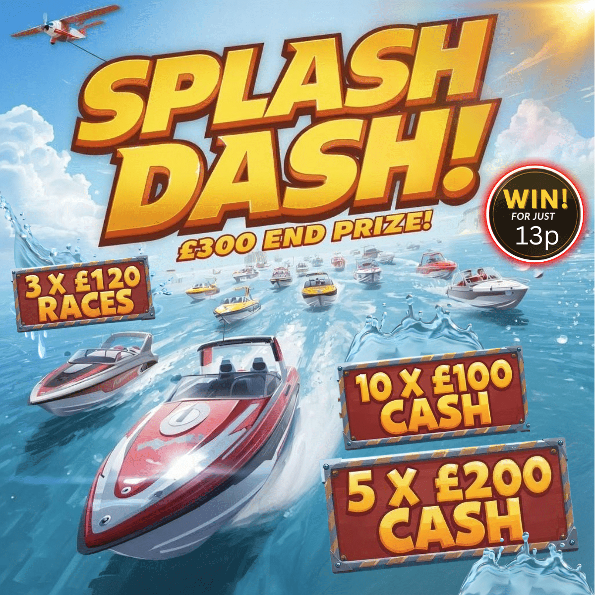 💦Splash Dash🛥️£300 End Prize +£2,000 Worth of Instants⚡3 x £125 Races 🏁