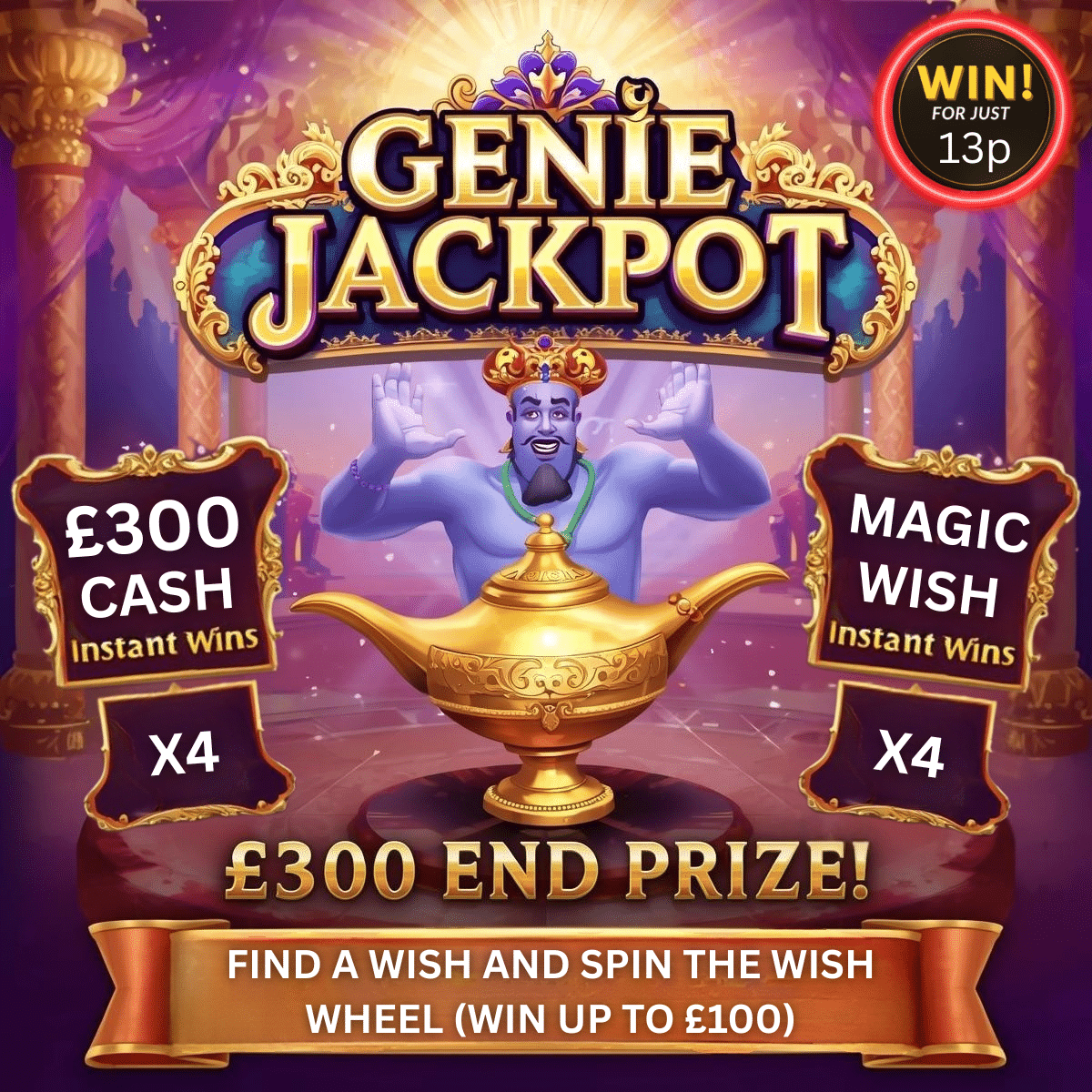 For just 13p a ticket, you could unlock magical riches — with a £300 End Prize, 4 x £300 Cash Instant Wins, and 4 x Magic Wish Bonus Spins where you can win up to £100 per spin! 💰💥
