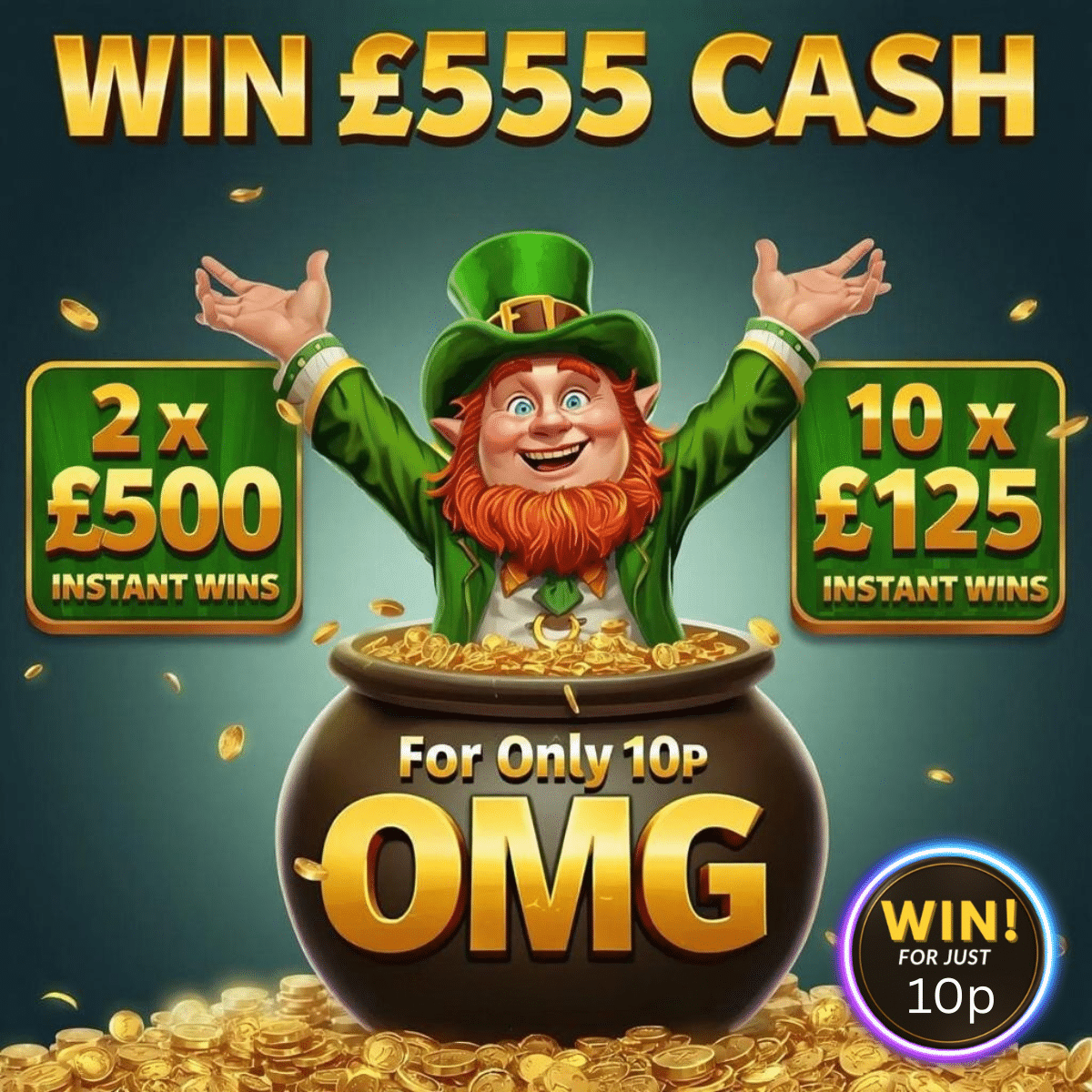 πΈ Win Β£555 Cash End Prize πΈ 2 x Β£500 + 10 x Β£125 Instants π₯ Only 10p!